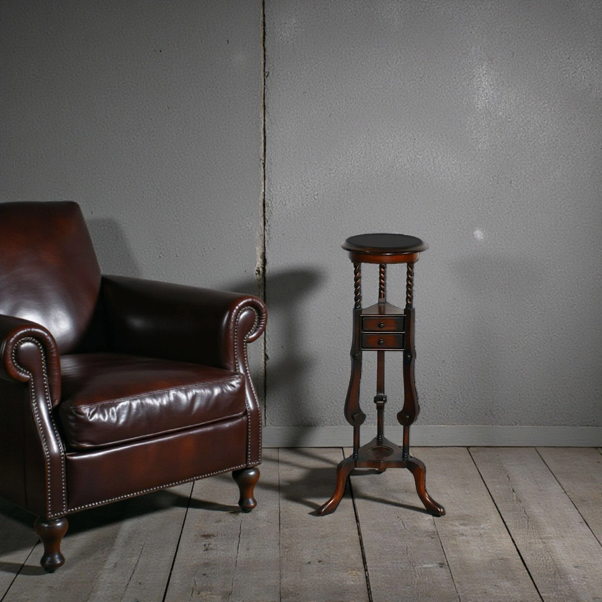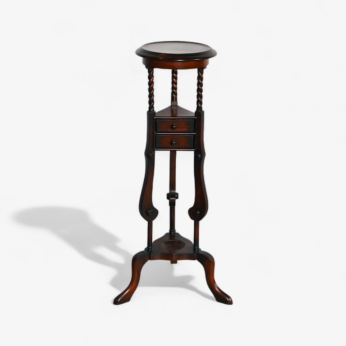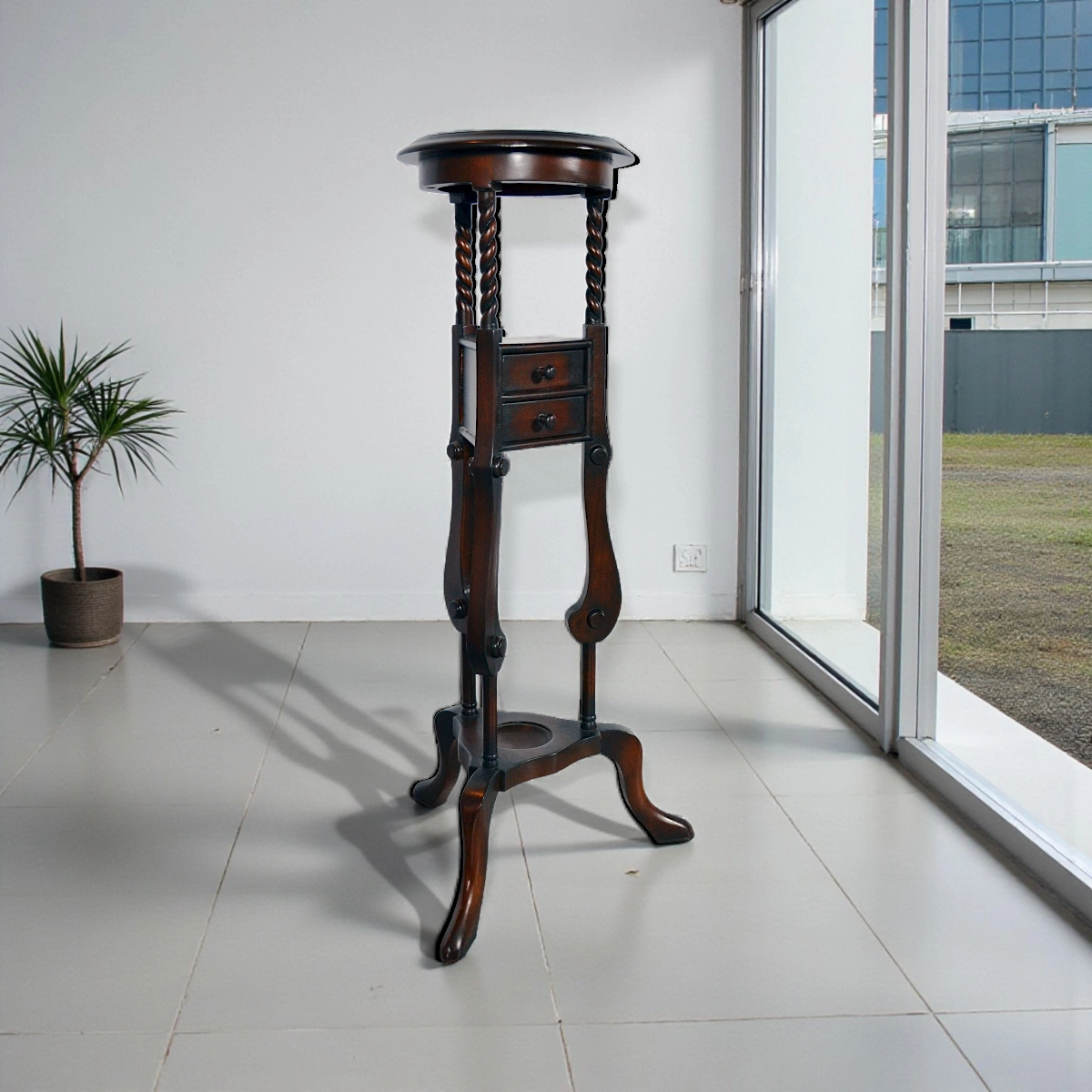 Стійка Giorgio Butnari HK-702 - з двома мініатюрними шухлядками, здебільшого використовується як підставка для квітів або для розтушування декору. Витончена конструкція з делікатним різбленням - є результатом кропітливої роботи індонезійських майстрів. Загальний образ у класичному стилі, виготовлена повністю з масиву червоного дерева, сорту Махагон.